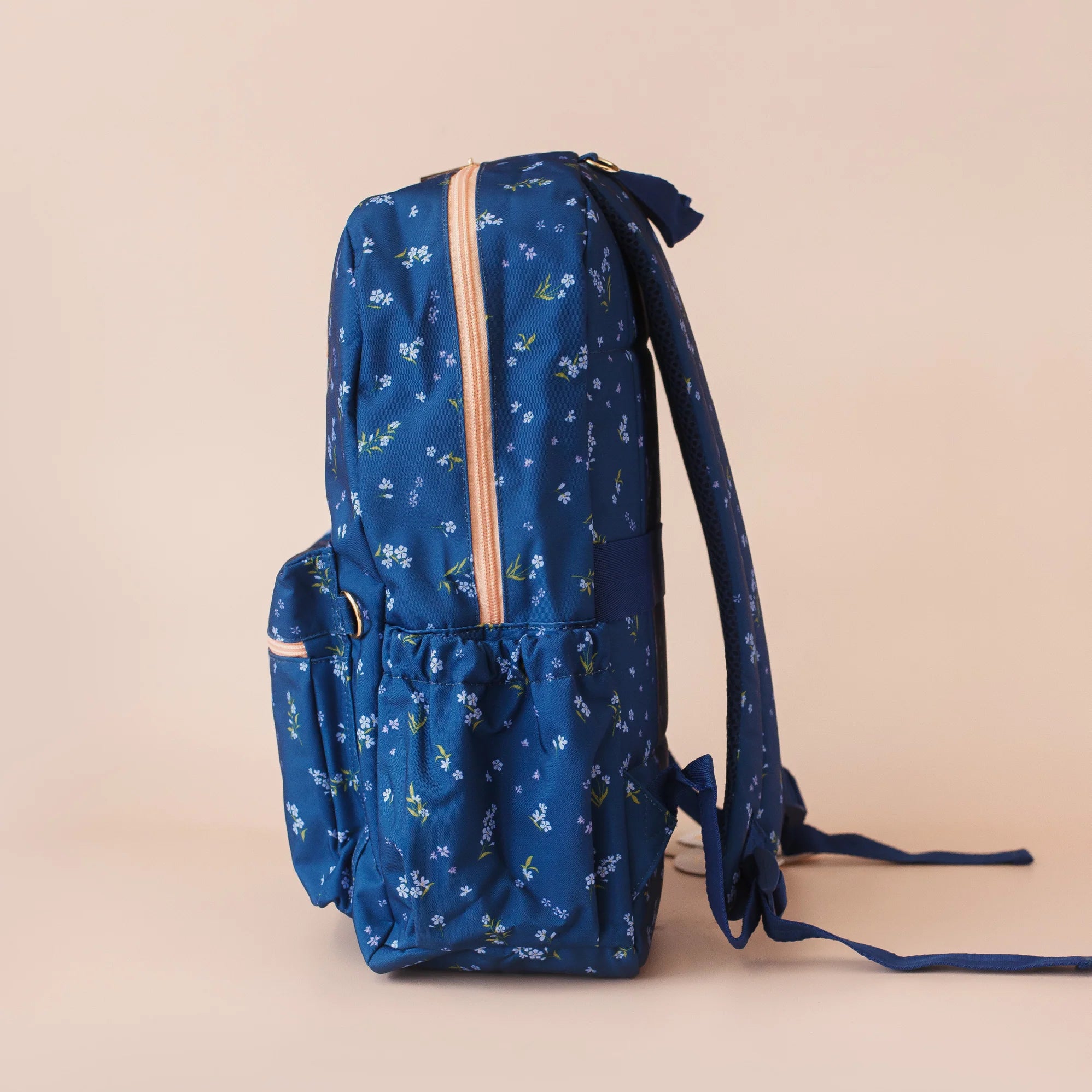 We’ve got dual pockets (one on each side) for water bottles, bucket hats, even toys or shoes and there’s two bonus zips inside as well as a generous outer pocket with a super cute scalloped rubber zipper pull.