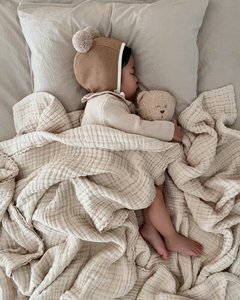 Organic Cotton Gauze Blanket LACE TRIM | Oat Milk