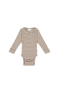 Organic Cotton Modal Fernley Long Sleeve Bodysuit - Narrow Stripe Tweed/Cloud