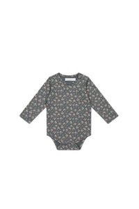 Organic Cotton Long Sleeve Bodysuit - Rosalie Floral Lava