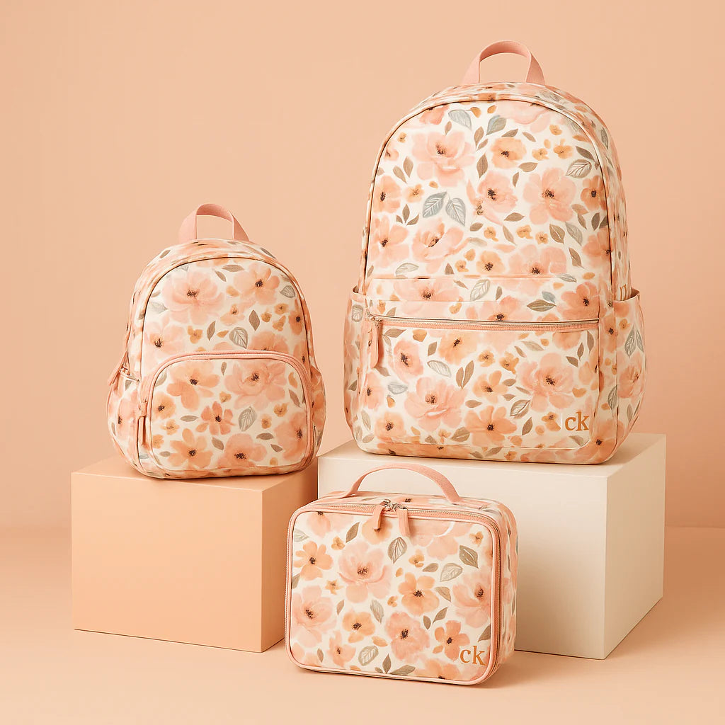 Sweet, soft, and oh-so-pretty – our Peach Blossom backpack is made for your little daydreamer. Featuring a delicate floral print in warm peachy tones with soft green leaves, this backpack blends beauty with everyday practicality.