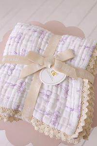 Muslin Blanket with Lace Trim | Lilac Bows
