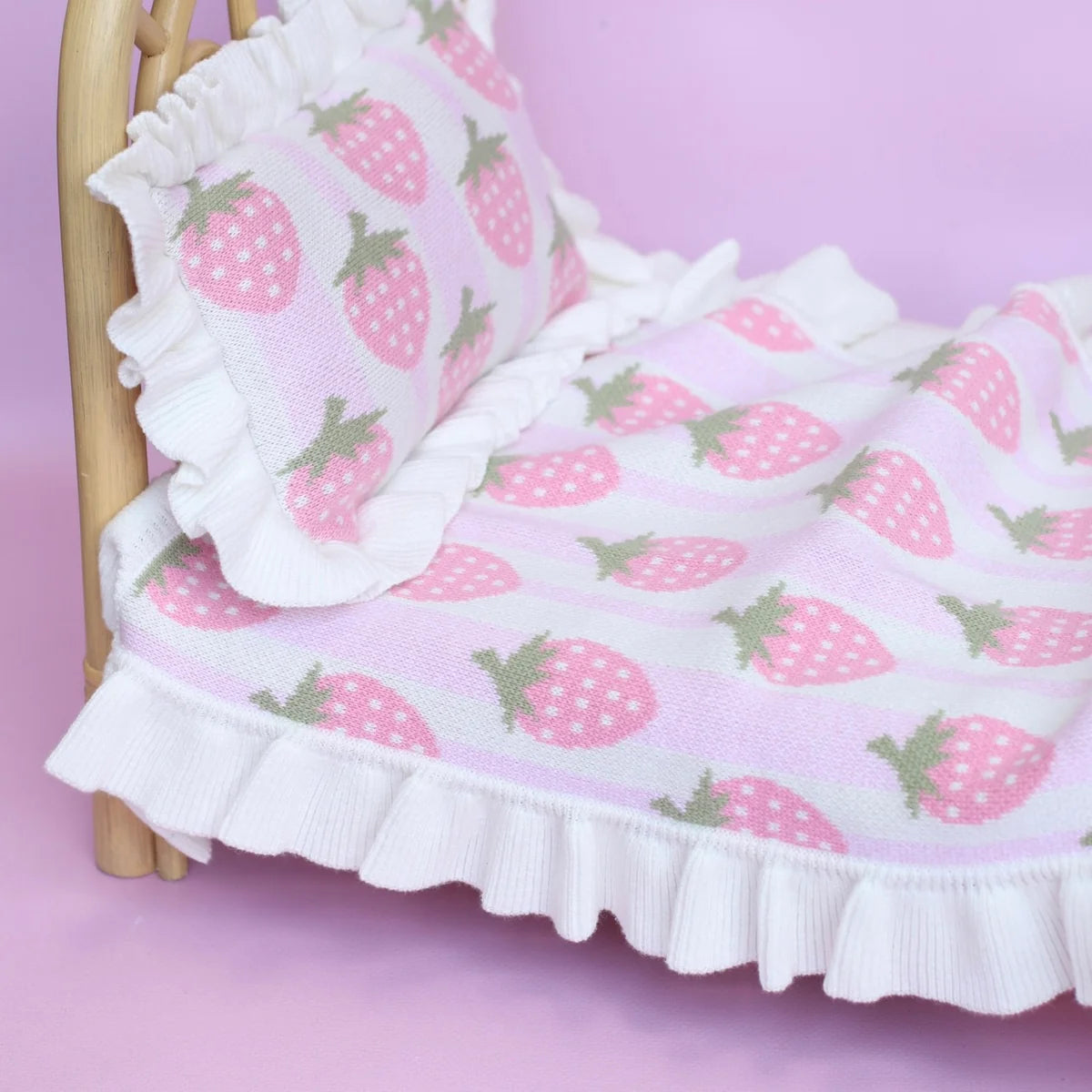 Whether draped over a doll’s bed, tucked into a pram, or styled in a playroom, this heirloom quality blanket and pillow set is as practical as it is beautiful, a keepsake piece designed to be treasured.