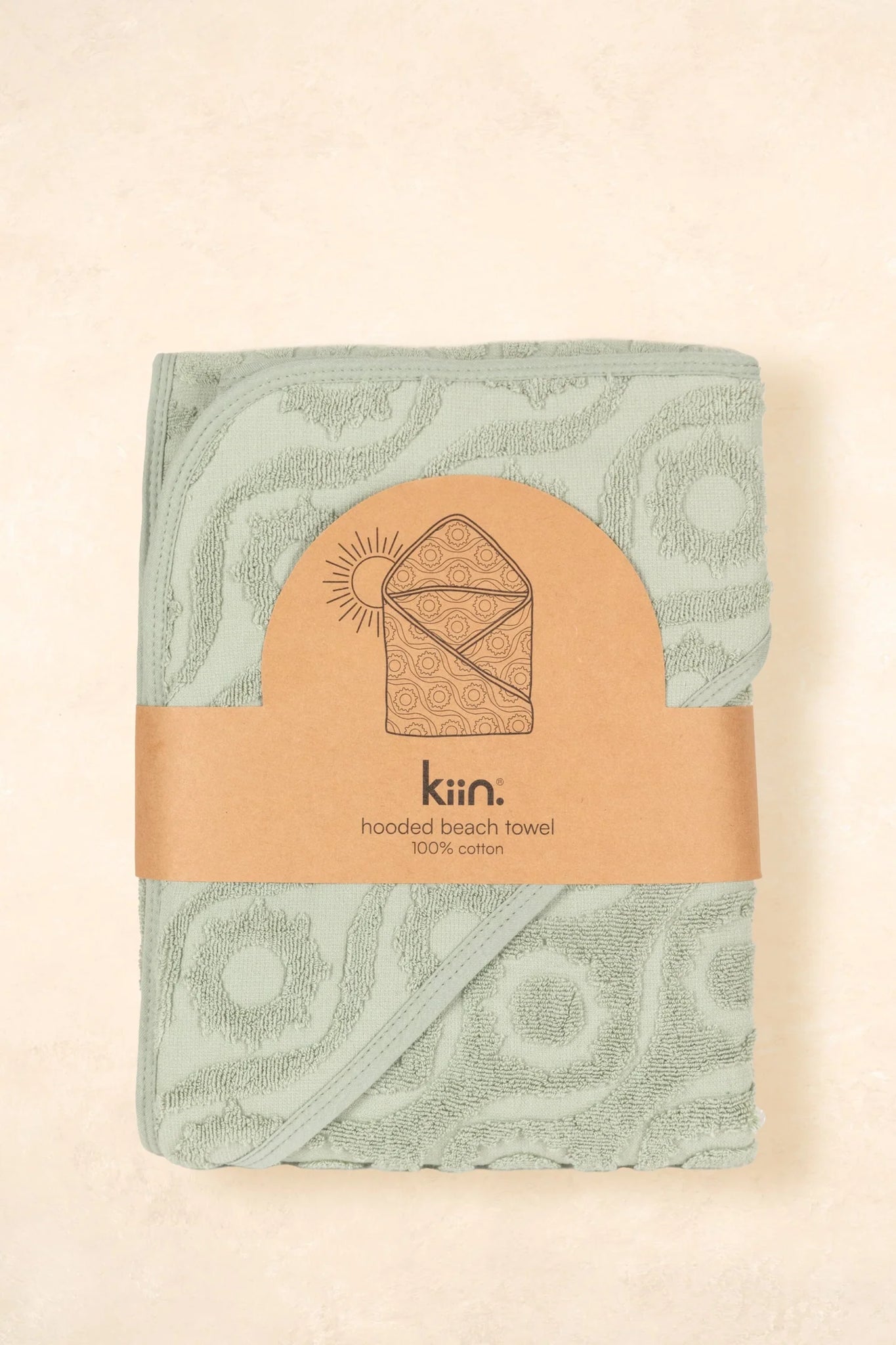 Woven from 100% premium cotton, it’s soft, breathable, and gentle on sensitive skin, with excellent absorbency to dry your child quickly and comfortably. Featuring our unique Kiin jacquard pattern in a retro-inspired sun design, it brings a touch of timeless style to summer memories. Available in our two most-loved colours, Sage and Oat, and finished with a simple hood (no bear ears)for a fuss-free, classic look.