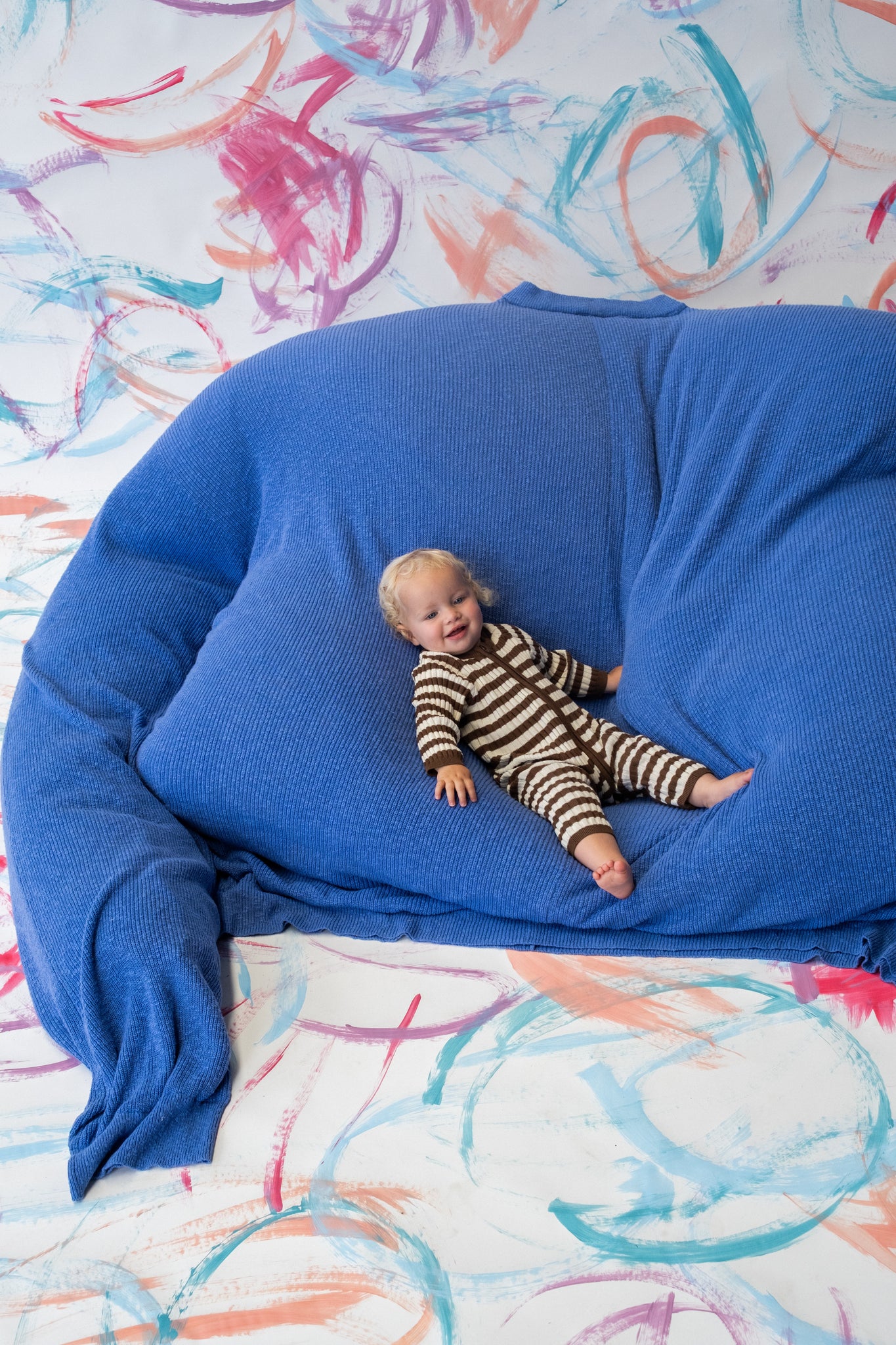 100% Organic Cotton with GOTS certificationChunky rib knitYarn dyed stripeRaglan armholeZipper at front opening