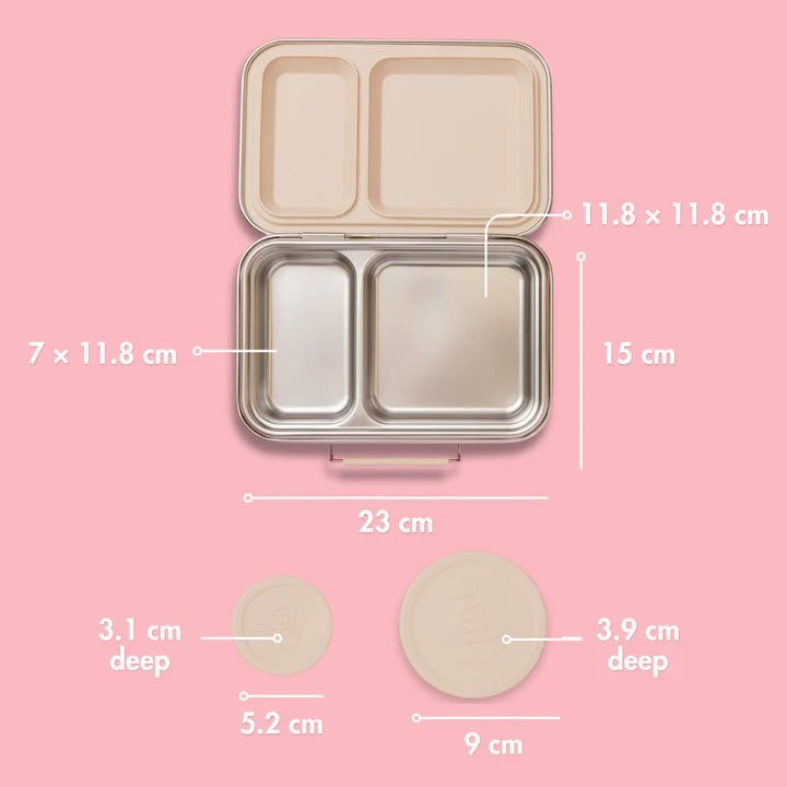 1. Room for more: The main compartment (11.8cm square) easily fits sandwiches, wraps, bread rolls, or a full salad. The second compartment is ideal for fruit, crackers or a sweet snack.
