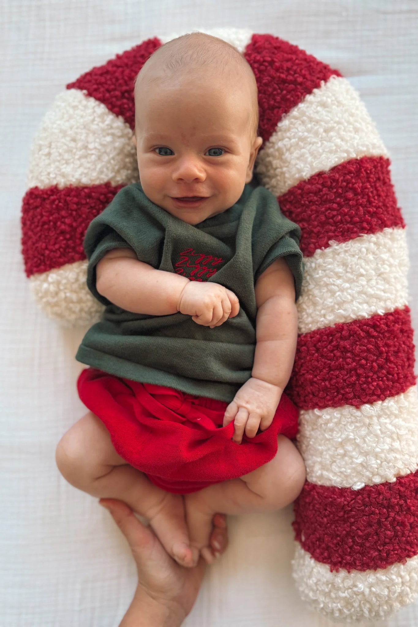 Terry towelling bloomers with an elastic waist + functional drawstring featuring our embroidered Shawn the Prawn design on the front. Mix and match with items from our Christmas Collection.