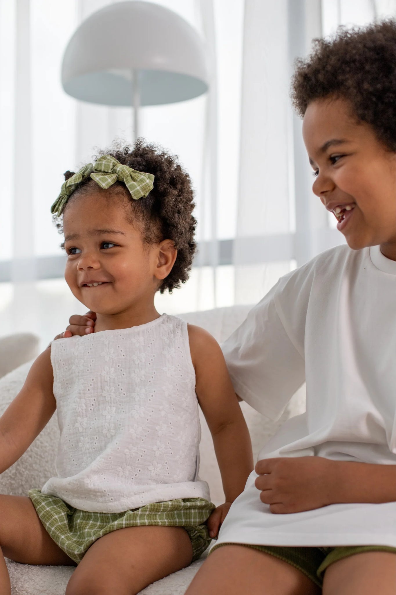 Cotton bloomers with a soft elastic waist in our Thyme fabric.